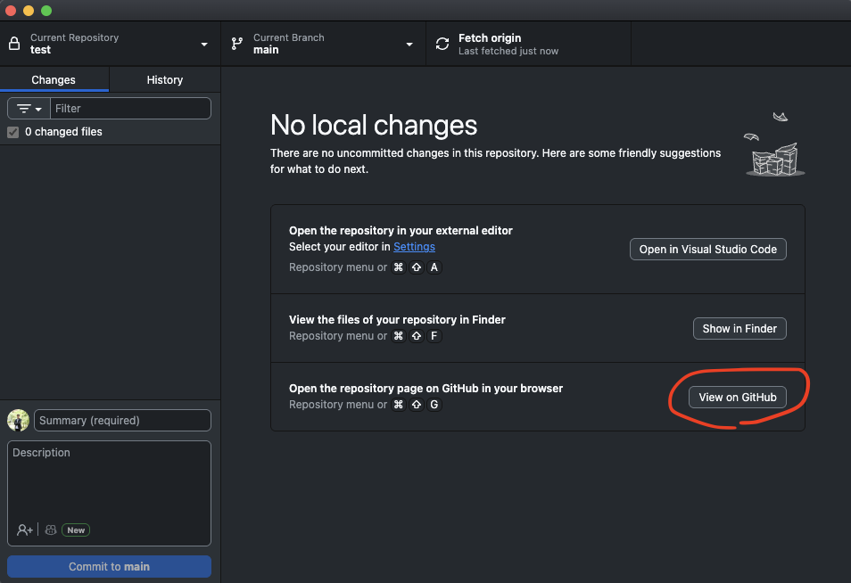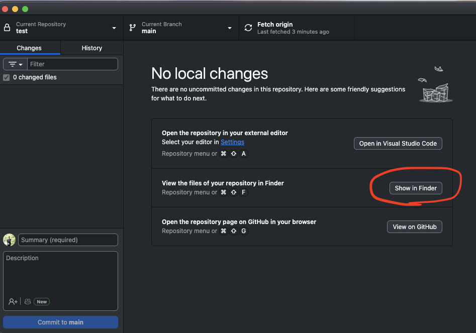 - Showi in Folderを押してローカル PC 上のリポジトリフォルダを開きます。