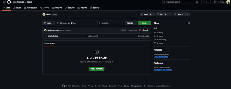 - Keep this code private にチェックを入れてください。非公開(Private)リポジトリに設定できます。