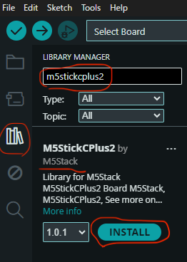 m5Stickcplus2」 を検索してインストール(1分もかからない)。