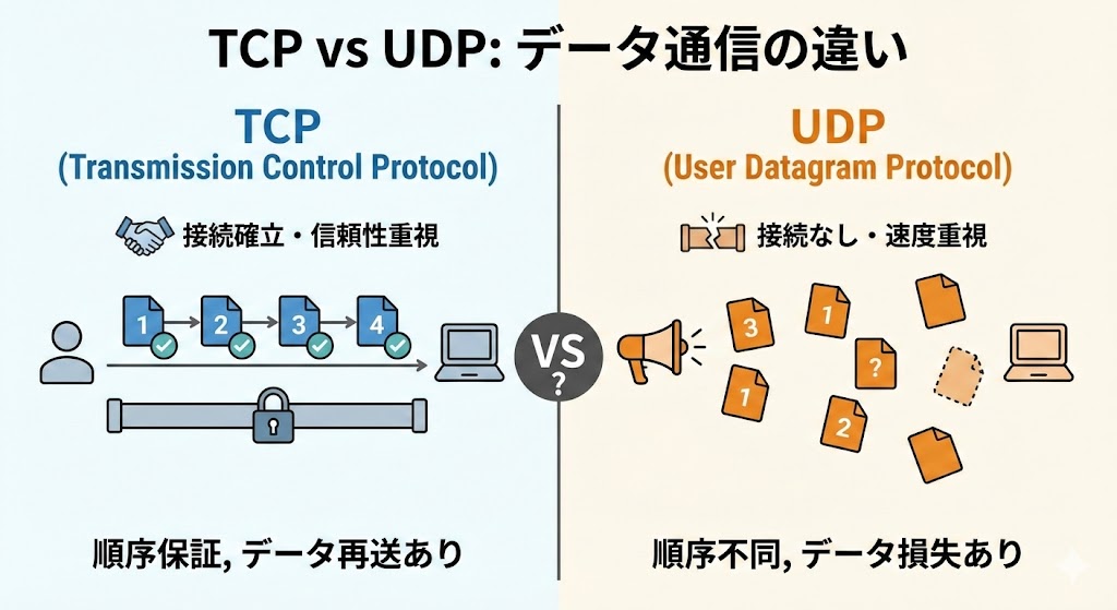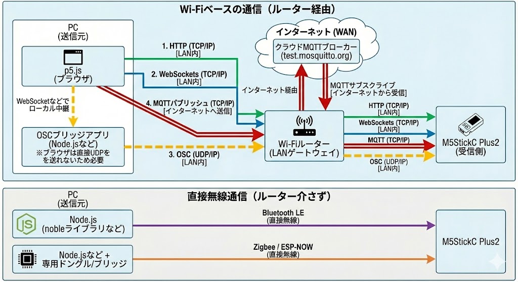 これまでは MQTT という通信方式を使ってきました。MQTTは「確実に届ける」ことや「インターネット越しに遠くと通信する」ことが得意ですが、手順が多いため、コンマ数秒の遅延(ラグ)が発生することがあります。 音楽と光を完全に同期させるような、「超高速・リアルタイム」 な通信が必要な場合、UDP というプロトコルがよく使われます。(Zigbeeなども)