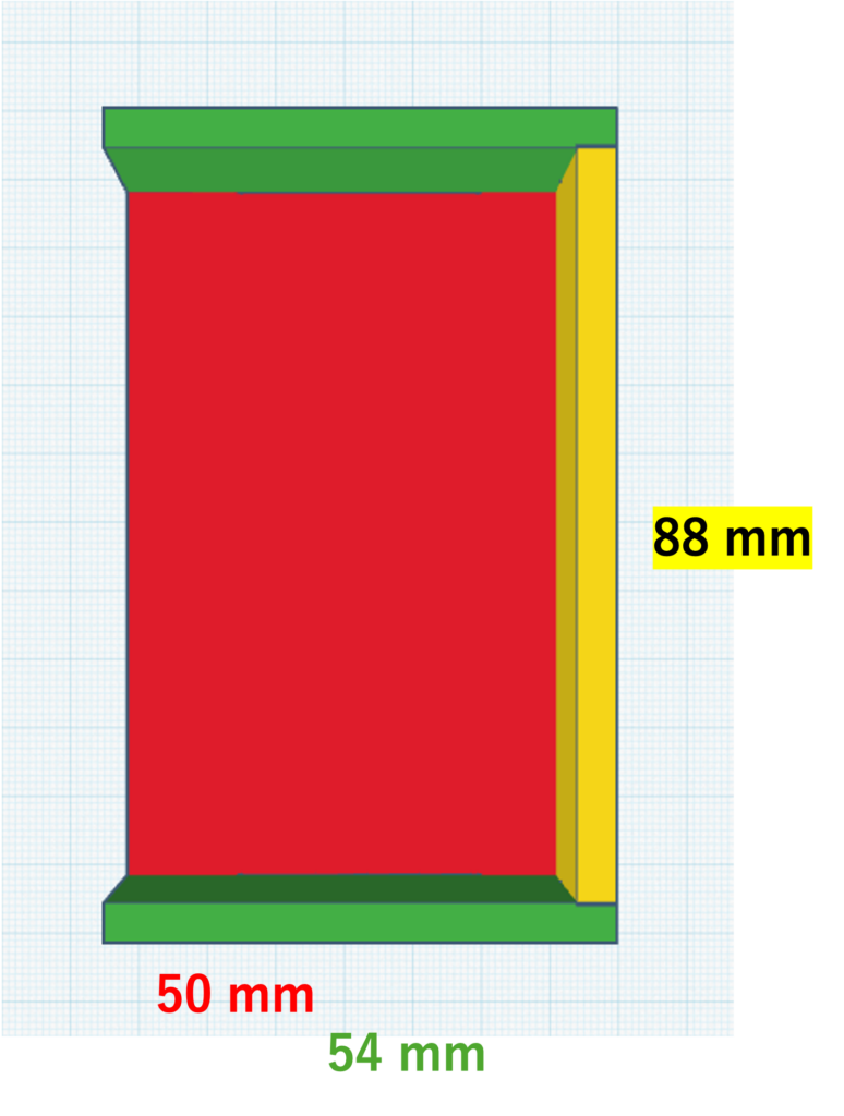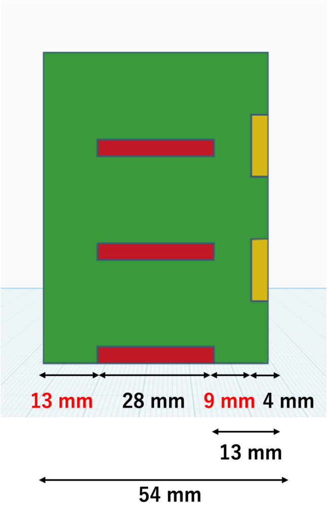- 13mm+9mm=22mmなので、奥行き54mm-背板の厚み4mm-22mm=28mmのタブができる
