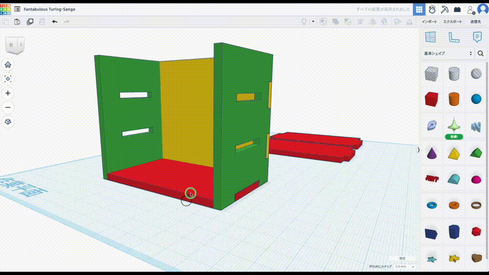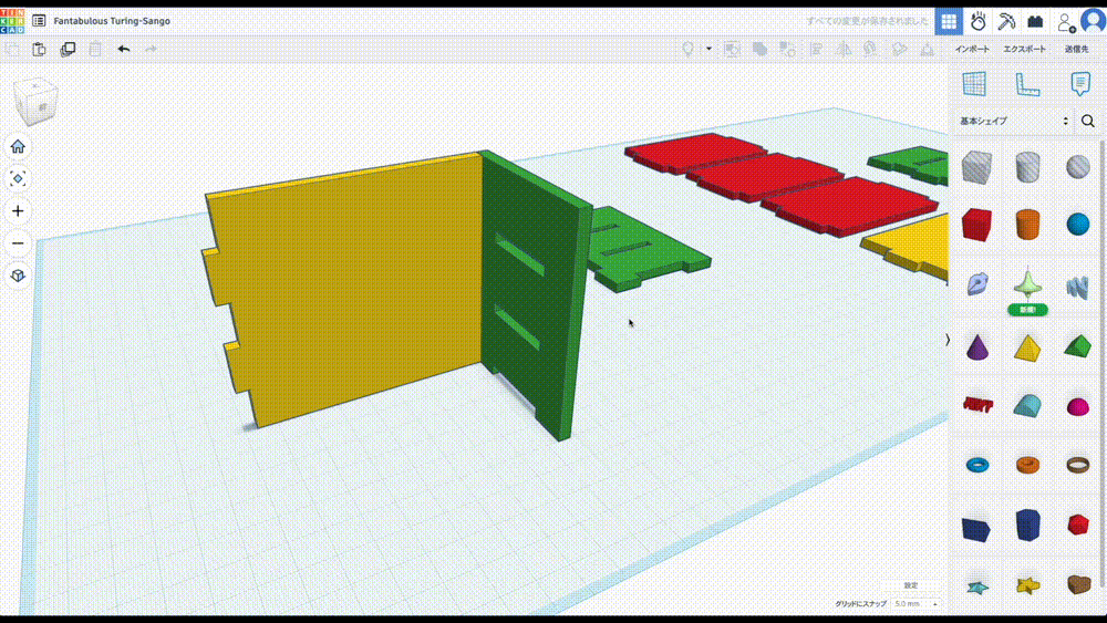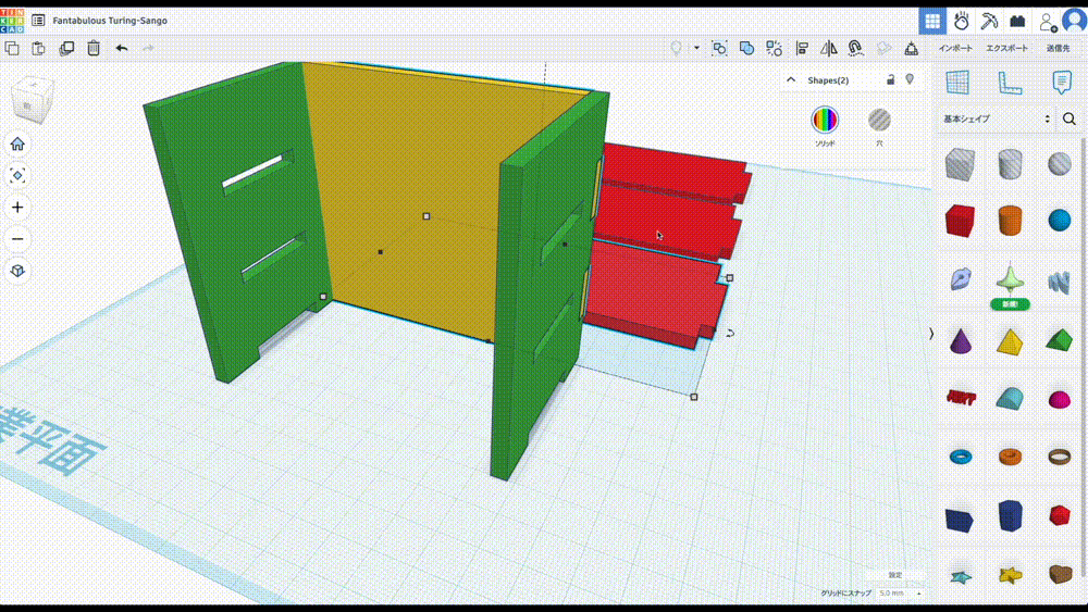 - 棚板(赤)も同様に 90度回転して、側板のタブ位置と Align(180度ひっくり返す必要ありそうでした)