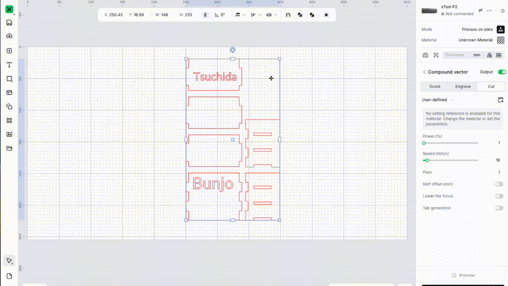 ※ デフォルト設定はScoreかと思います。Scoreだと細い線が彫られるのみなので注意。