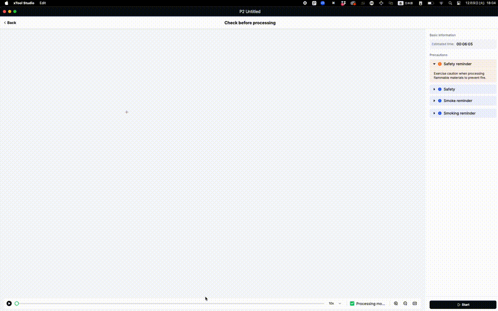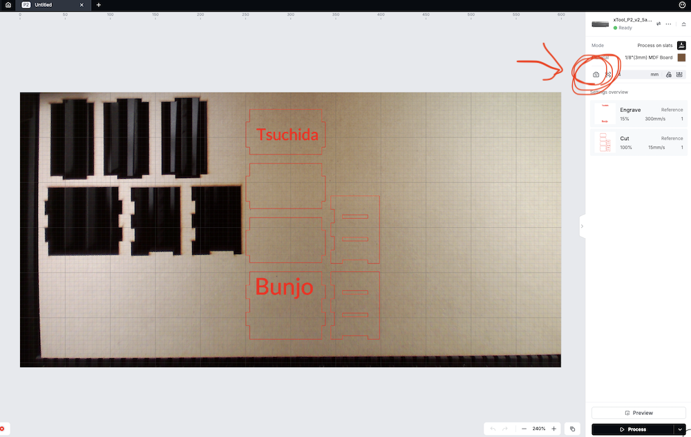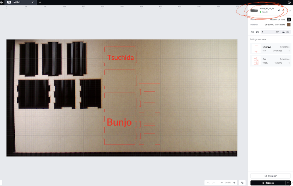 - xTool Studio の右上「デバイス」欄に P2 が表示される