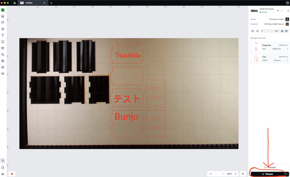 ※ 最後にカットしないと、部品がズレて彫刻が失敗する。